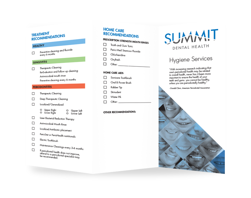 Need: To create a logo, brand, brochures, educational materials, and business cards to unify all offices in the practice during a dental office merger and brand unification process.